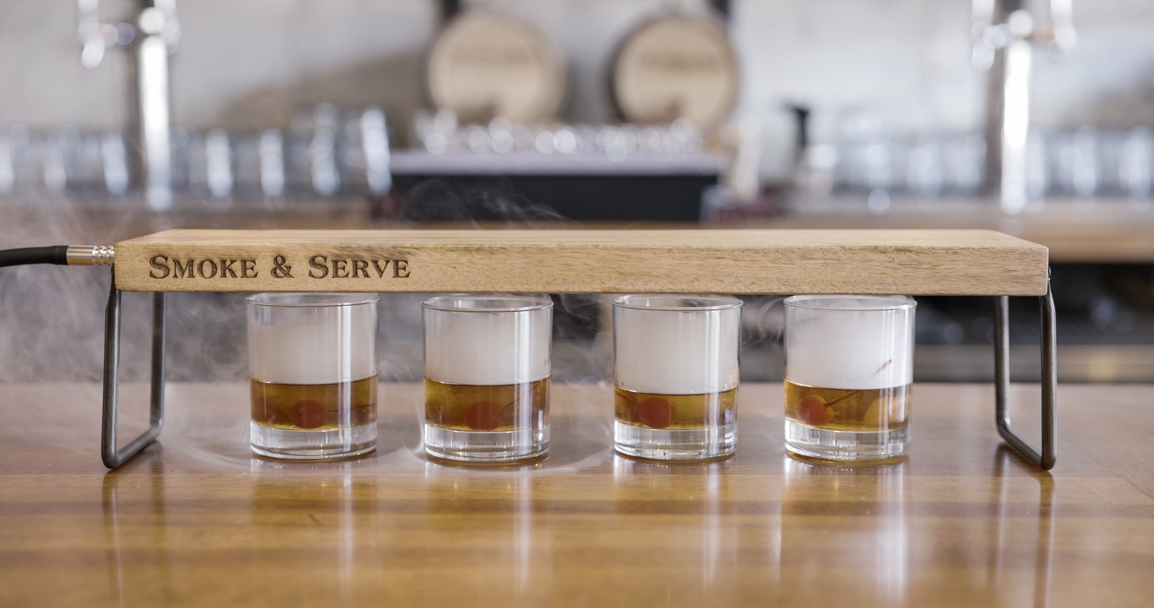 Entertain and amaze your friends with The Ultimate Cocktail Smoking Kit! Add delicious smoke flavor to all your favorite craft cocktails. You can smoke 1 drink or up to 4 at a time. This kit includes The Smoke & Serve, a Rechargeable Smoking gun, 4 hand blown cocktail glasses, 4 cork stoppers, and a sample pack of wood chips. All you need is a lighter and your favorite cocktail to get started.